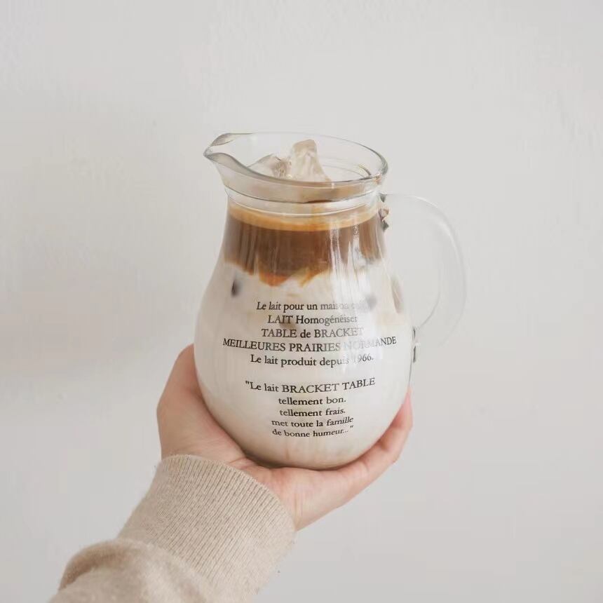 持ち手付き レタリング グラスマグ コップ ジャグ 韓国雑貨 北欧雑貨
