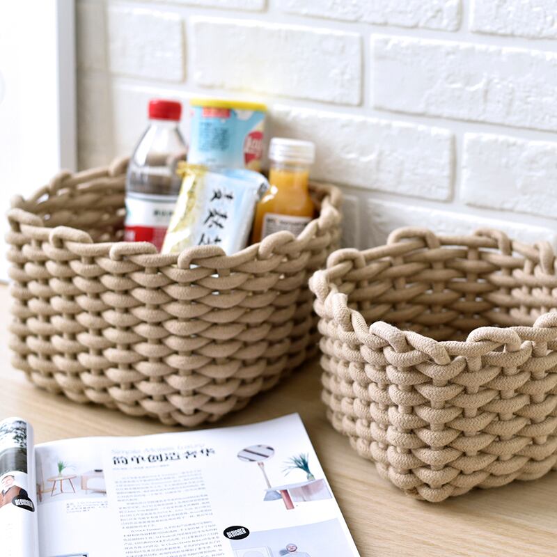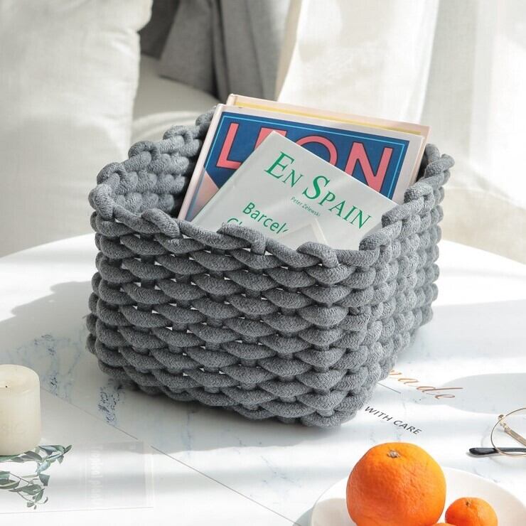 もこもこ ロープ編み バスケット 小物入れ 収納 Sサイズ