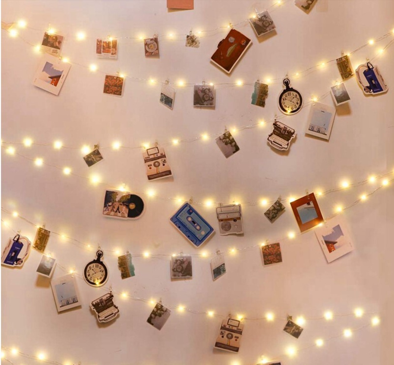 お気に入りのポストカードや写真を飾れるクリップ式ガーランド。
