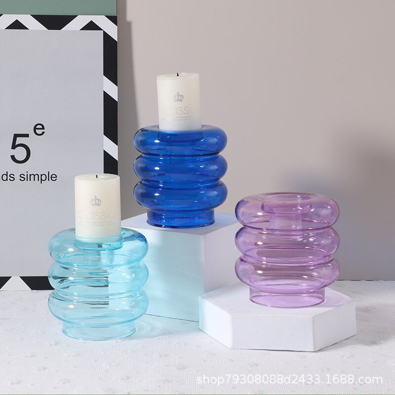 クリア ガラス キャンドルホルダー 8color