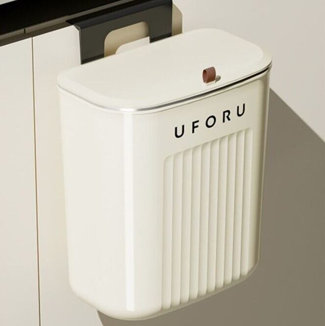 シンプルで落ち着いたデザインの壁掛け式キッチンゴミ箱。
