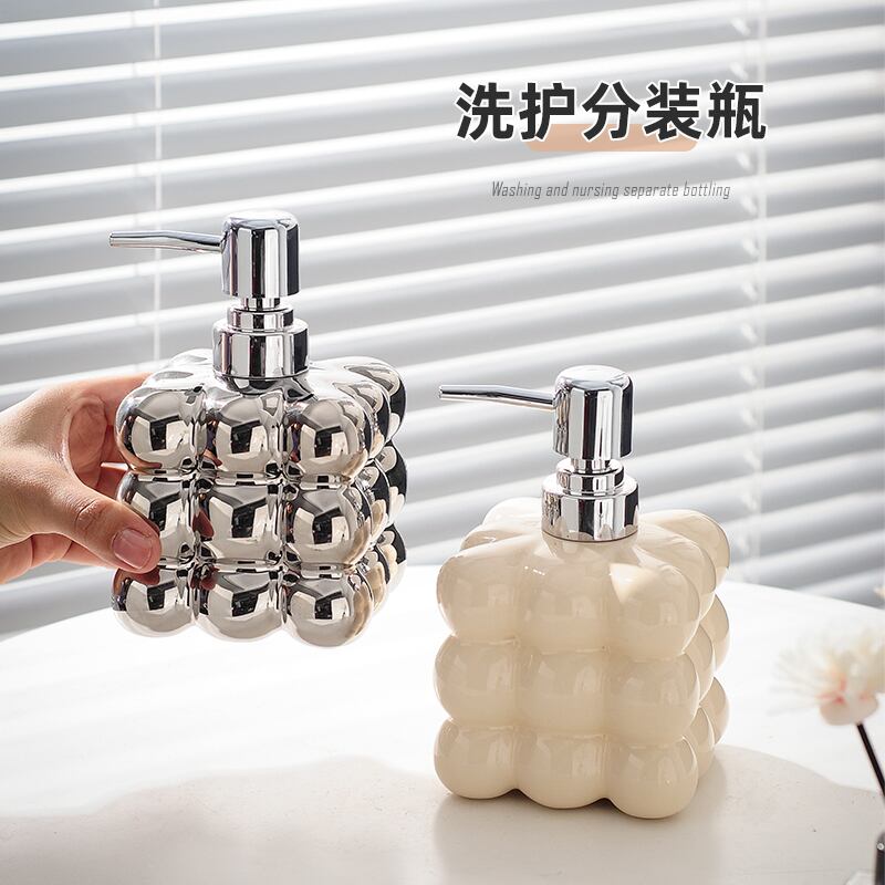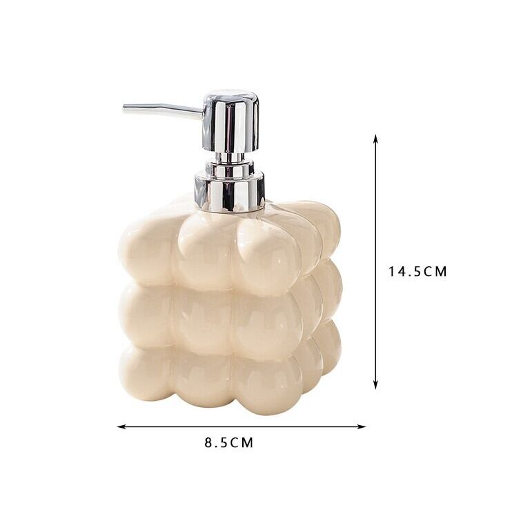 ぽこぽことした愛らしいデザインがポイントのバブル型ソープディスペンサー。