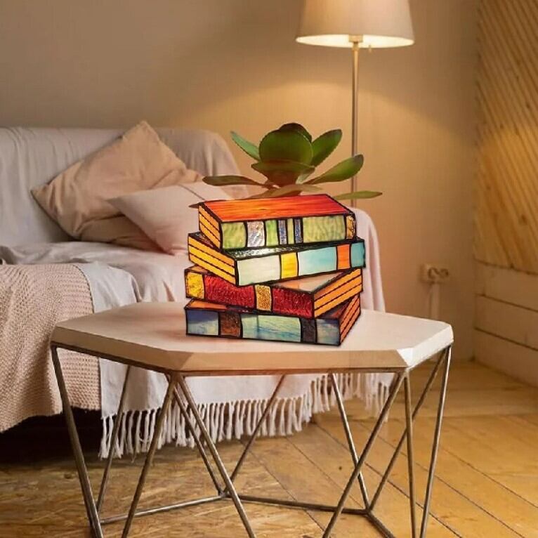 ヴィンテージ ステンドグラス スタック ブック ランプ ナイトライト